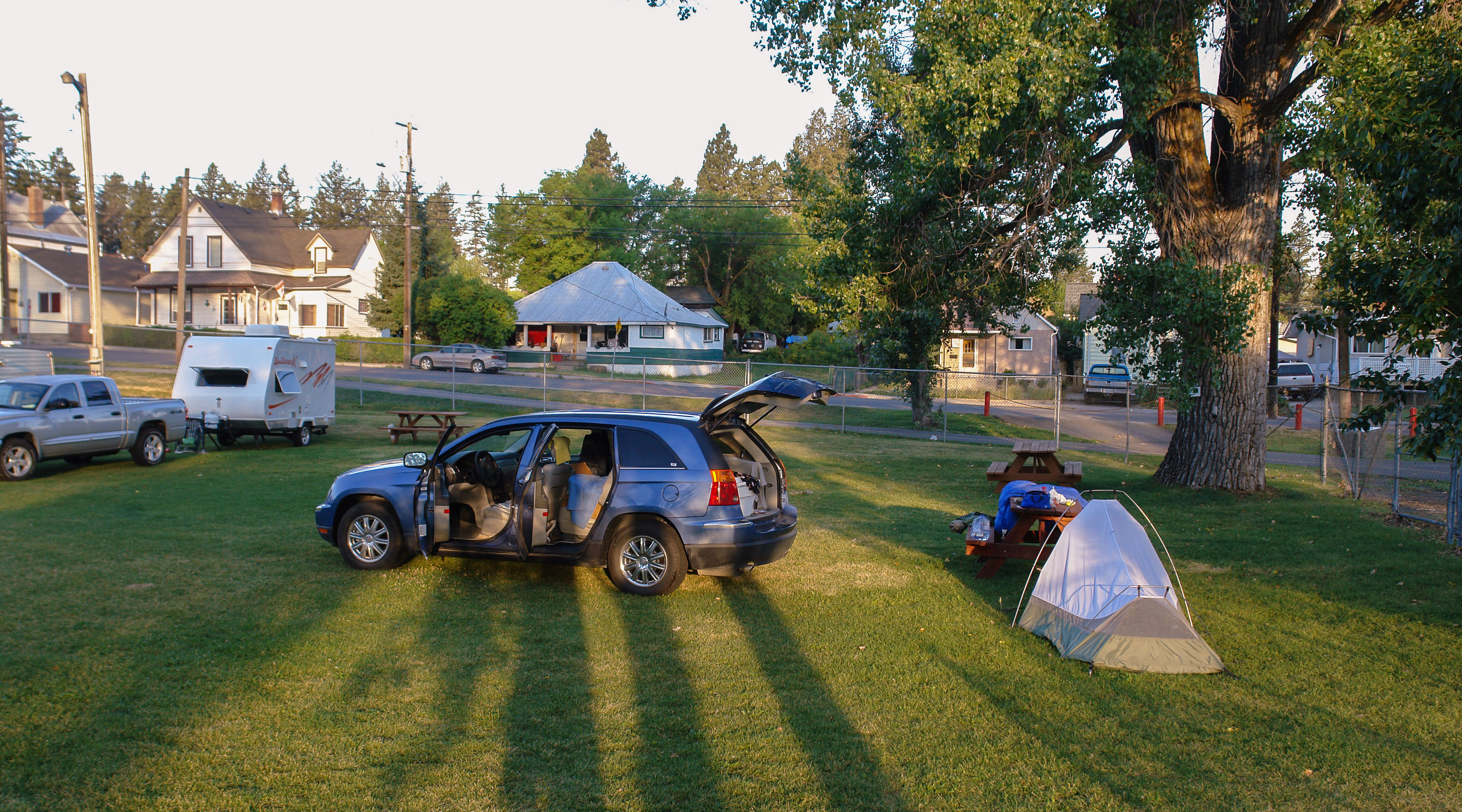 Camping in den USA ist ein anderes Erlebnis als Camping in Europa. Viel mehr Platz heisst das Stichwort, dazu kommt: eigene Feuerstelle und oft atemberaubende Szenerie. Aber auch in Europa kann man schöne Plätze finden.